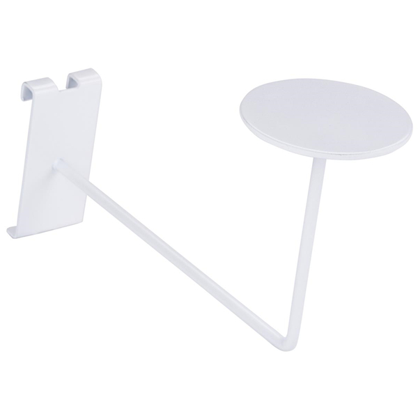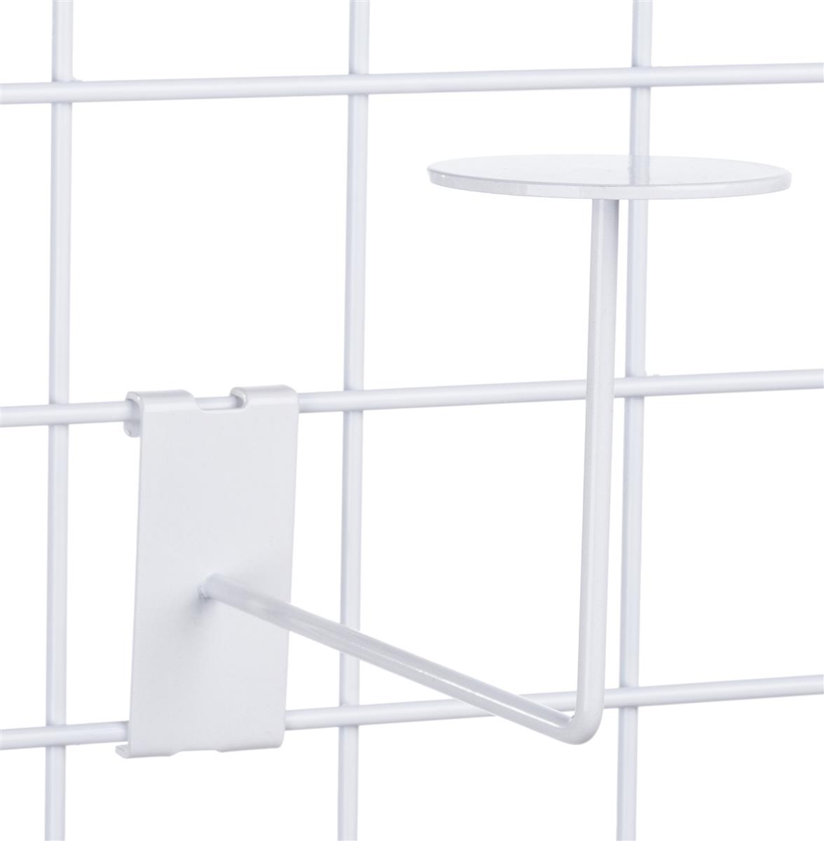 Ce cintre de chapeau de grille est un accessoire d'affichage blanc pour les panneaux de grille standard. Le crochet s'étend à 8 'du mur et se termine dans un couvercle rond pour aider à soutenir les chapeaux ou les casques de toutes sortes. Le cintre du chapeau de grille est vendu en unités de 15. Créez une impressionnante gamme de marchandises de chapeau à l'intérieur de votre magasin!