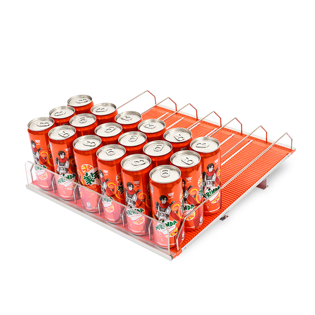 Système de poussoir à rouleaux d'étagère d'alimentation de gravité en aluminium
